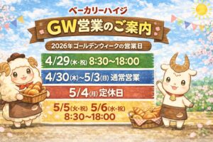 ゴールデンウィーク期間中も、焼きたてのパンをご用意して皆さまのご来店をお待ちしております。